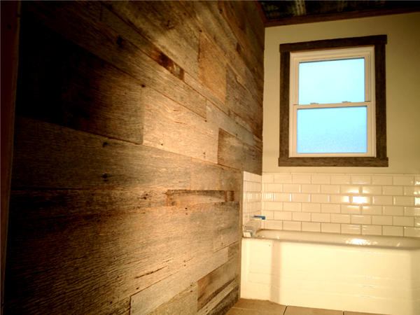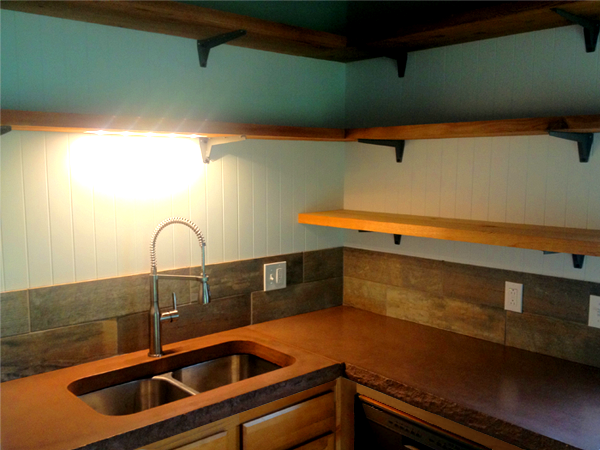Helping Corey with the interior finishes; recycled barn siding as an accent wall, recycled barn tin for the upstairs ceiling, and concrete counters in the kitchen.